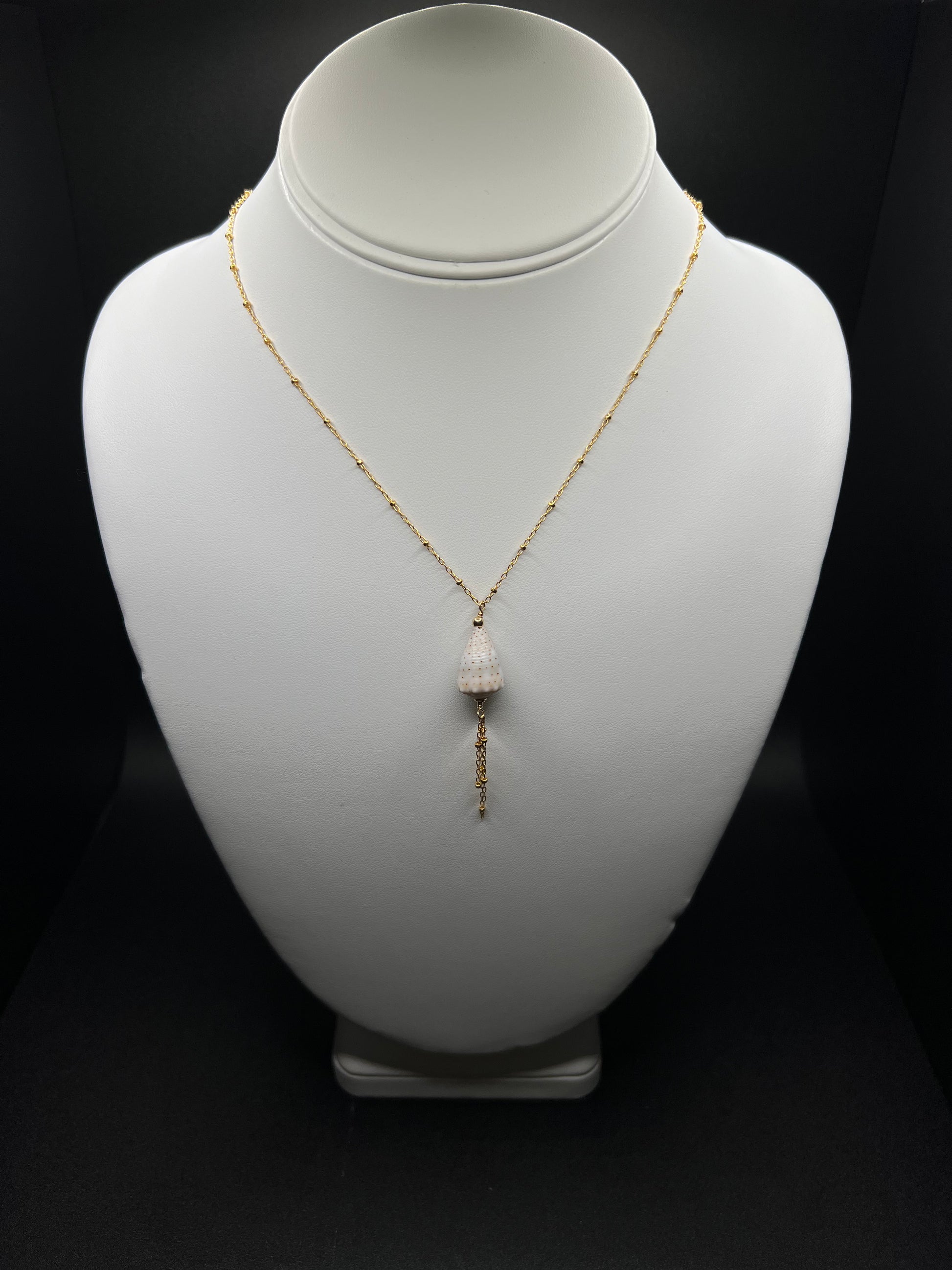 Embrace the beauty of the sea with our Abbreviated Cone Shell Necklace, a delicate yet striking piece inspired by the ocean’s natural treasures. This handcrafted necklace features a genuine abbreviated cone shell pendant, carefully selected for its unique patterns and coastal charm. Below the shell, a satellite chain adds a subtle shimmer, enhancing the necklace’s elegance with its delicate beaded design.