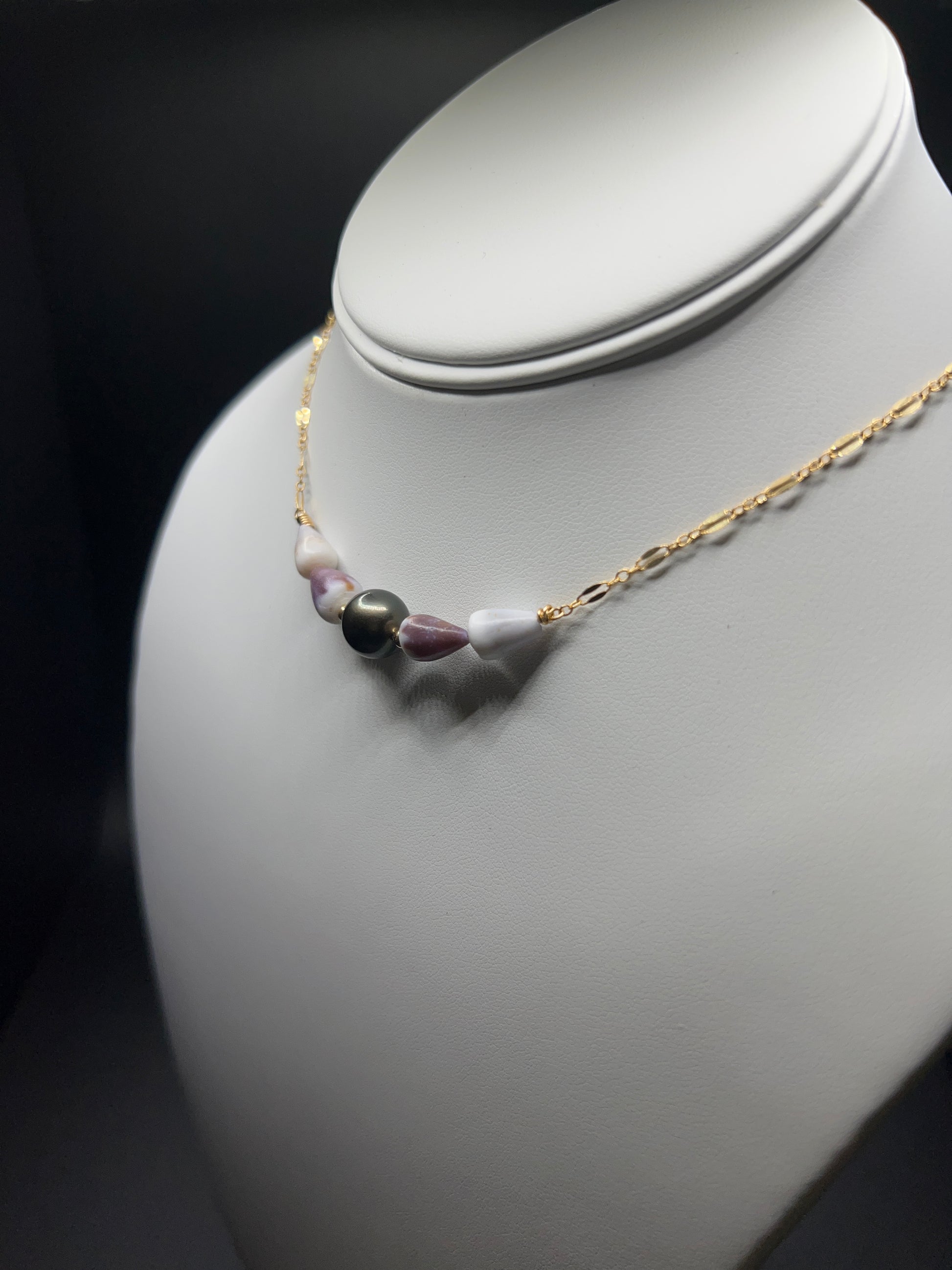 Minimal yet deeply connected to the sea, the Kai Bar Necklace is a tribute to the ocean’s timeless beauty. Featuring a sleek horizontal bar design, this piece is adorned with handpicked cone shells and a radiant Tahitian pearl. The name Kai—Hawaiian for "sea"—perfectly reflects the tranquil yet powerful spirit of the ocean.