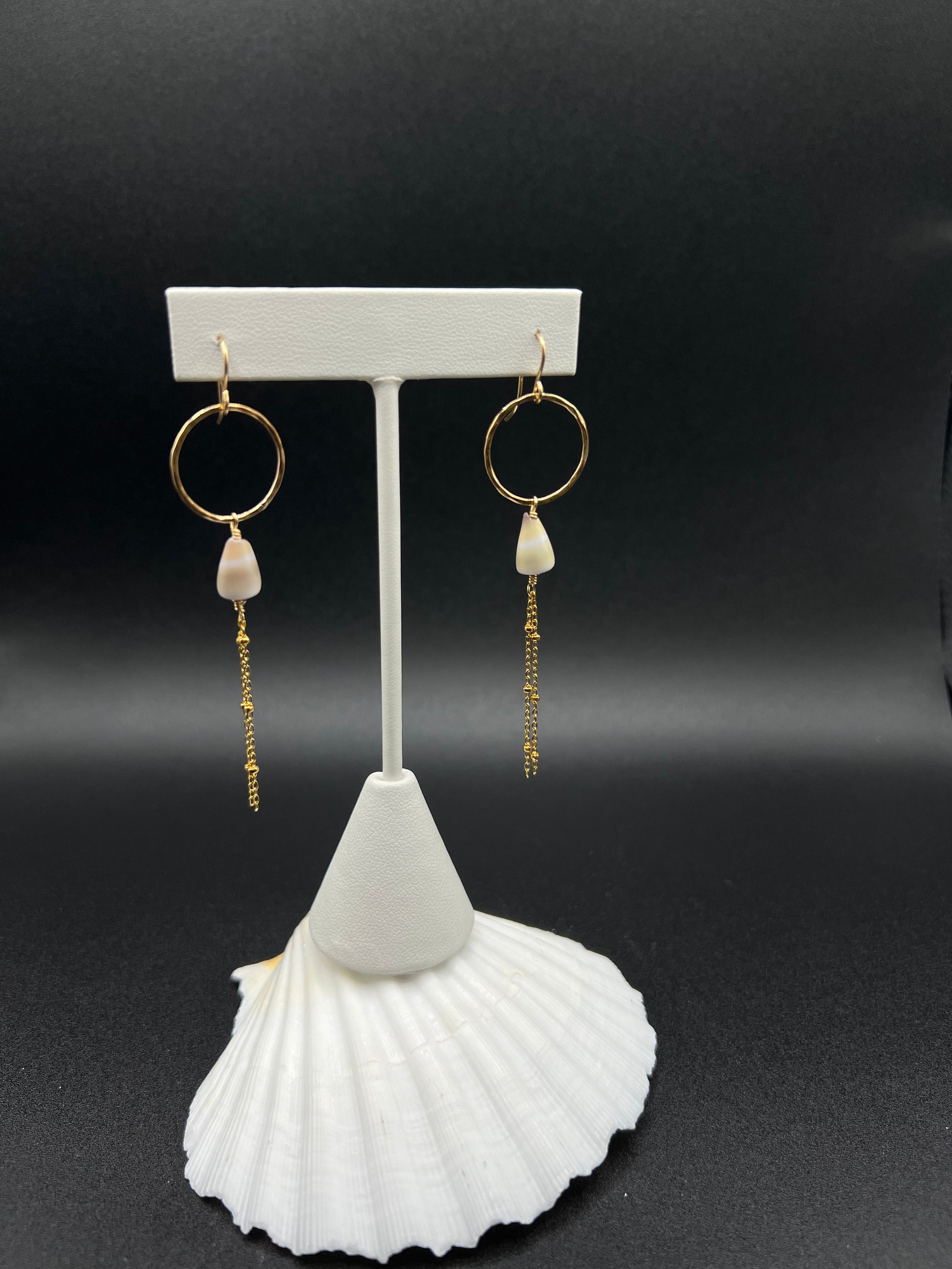 The Mini Cone Earrings are a perfect blend of elegance and coastal beauty. Featuring genuine mini cone shells, each earring showcases the ocean’s natural artistry in a petite, graceful form. The shells are suspended from a soldered hoop, with a delicate chain dangle adding soft movement and a hint of shimmer.