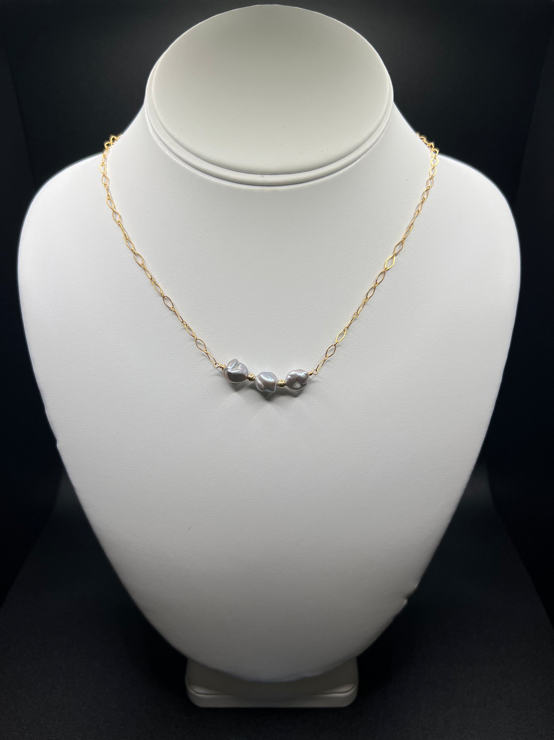 Inspired by the serene hues of the sea, this necklace features delicate light blue freshwater pearls that capture the essence of ocean mist and gentle waves.